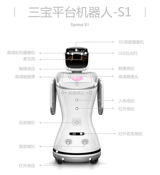 三宝机器人是旗瀚科技的自主研发产品,于2015进入市场,并在2016年推进至多个行业市场,目前渗透度较高的场景包括家庭、商业连锁和海关、银行等公共服务领域。