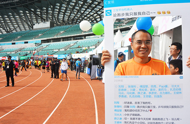 11月27日,在深圳南山半程马拉松活动现场,上演了一幕温暖感人的求婚大戏,刚刚陪女友一同跑完马拉松的小宝便单膝跪地,拿出准备好的戒指鲜花,在马拉松的终点三宝平台机器人展位前,向女友求婚,结束了这场长达5年的"爱情马拉松"。